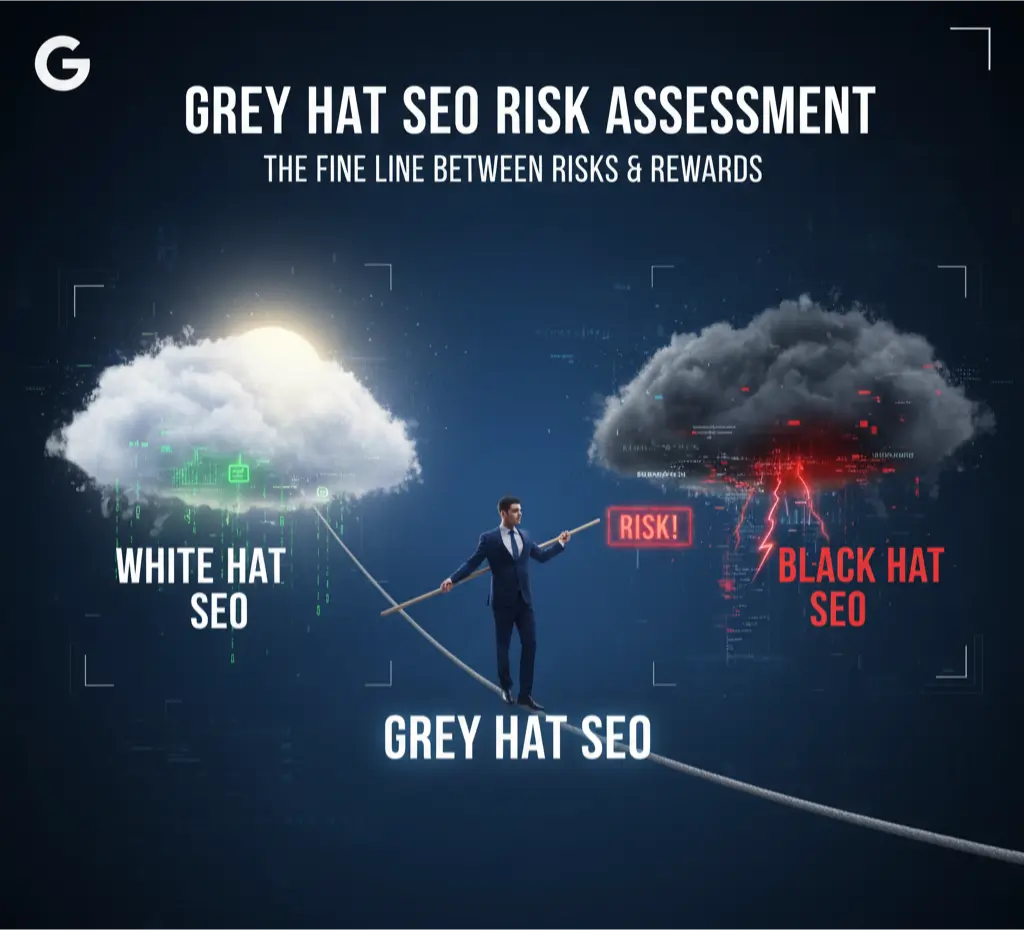 Navigating the fine line of grey hat SEO requires a careful assessment of risks versus rewards.