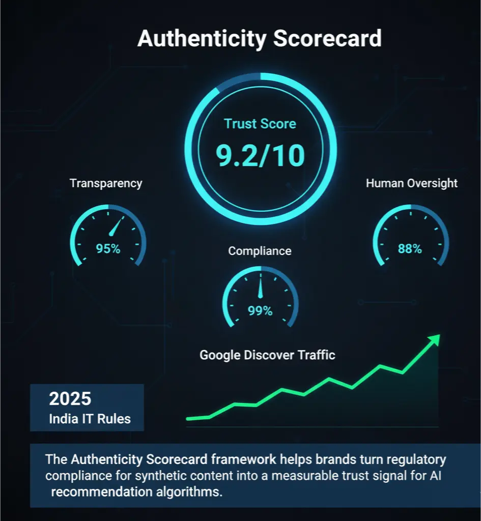 The Authenticity Scorecard framework helps brands turn regulatory compliance for synthetic content into a measurable trust signal for AI recommendation algorithms.